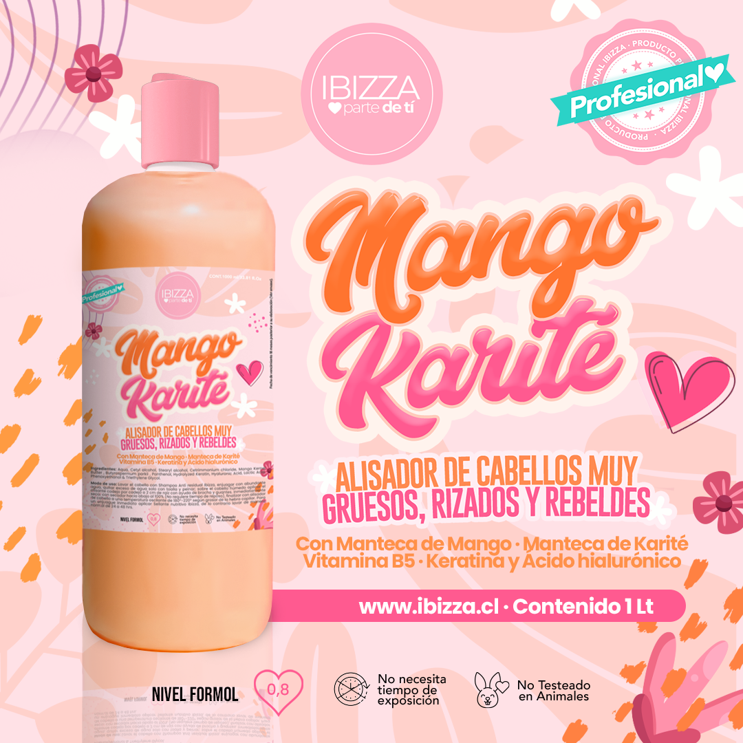 Activos principales: Manteca de Mango, Manteca de Karité, Vitamina B5, Keratina y Ácido hialuronico.