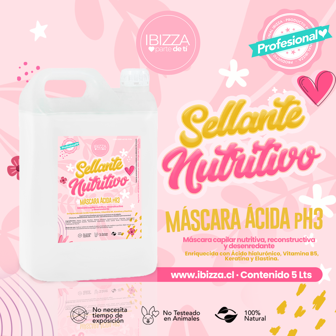 Activos principales: Enriquecido con Ácido hialuronico, Vitamina B5, Elastina y Keratina.